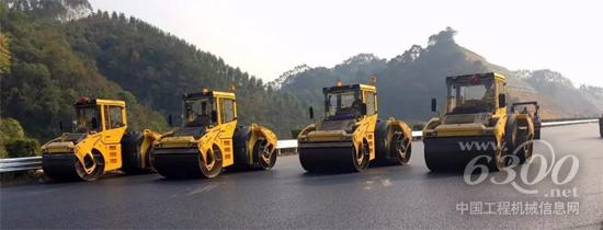 2018年1月19日,第二天的培训地点在柳南改扩建项目的标段上,长长路桥公司的4台宝马格压路机并驾齐驱地为广西公路建设贡献力量。