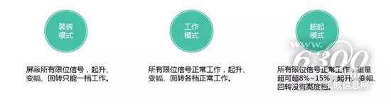 智能管家系统独创多项智能控制技术管控人员设备安全,保障工程进度。PLC在不同工况下根据指令实现装拆模式、工作模式、超起plus模式的多模式切换,更加安全、方便。与之匹配的随载随速吊重自适应节能控制技术可根据吊重量自动优化匹配起升运行速度,合理分配运行速度及能量,让作业更高效节能。在机身进行回转运动时,变频器自动匹配控制电机速度与涡流,实现对回转臂架启动、运行、停止时的平稳控制 。