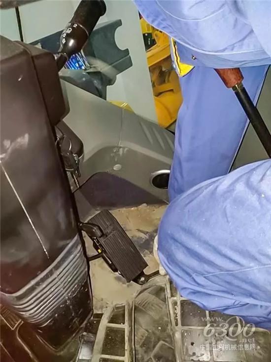 到达设备故障地后,张俊马上投入工作,但是经过几轮排查却没有找到导致发动机转速低的原因。经验丰富的张俊找到了这台装载机的操作手,通过简单交流再加上驾驶室地面上遗留的积雪痕迹,张俊心中对故障原因有了大概了解:这台故障设备最近都在积雪的高速公路上施工,很可能是操作手脚底的雪水与除雪用工业盐使踏板线路受潮。相比日常工作中接触到的常见故障,这种情况确实十分少见。