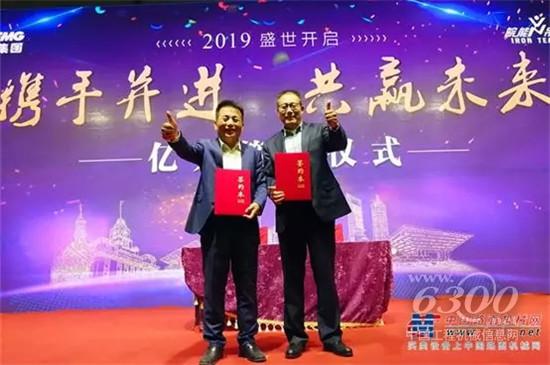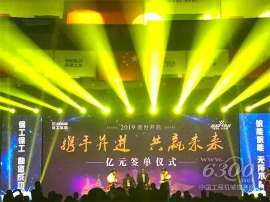 在活动现场500名嘉宾的见证下,徐工起重机械事业部副总经理张汉徐与皖能吊装董事长胡长生正式签下总价值1亿元的起重机采购合同。此次协议的签订标志着徐工与皖能吊装未来更加长期深度战略合作的新起点。