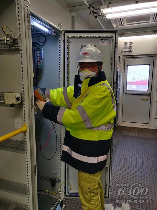 目前,英国利物浦项目正处于交机阶段。陆工院的孙博伦和他的团队每天前往码头现场,开展电气调试工作。