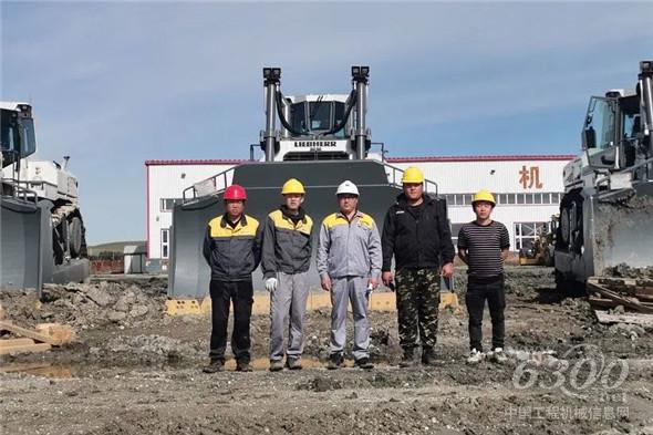 当配件运抵煤矿的当天,天公不作美,因当地出现雷雨天气,导致装配施工有所延迟。但为了保证机器顺利落地,以便快速进行后续高强度的作业,利勃海尔工作人员趁雨停之际,在允许操作组装吊车的情况下,安装人员与“天公”抢夺分针毫秒,现场工作小组快速协同,仅用半天的时间,高效率、高质量地把第一台利勃海尔矿山推土机组装完成。