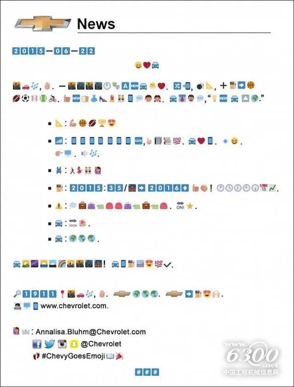 2015年,新闻稿领域杀出了一匹黑马。它就是雪佛兰针对新品发布的那篇纯Emoji新闻稿。